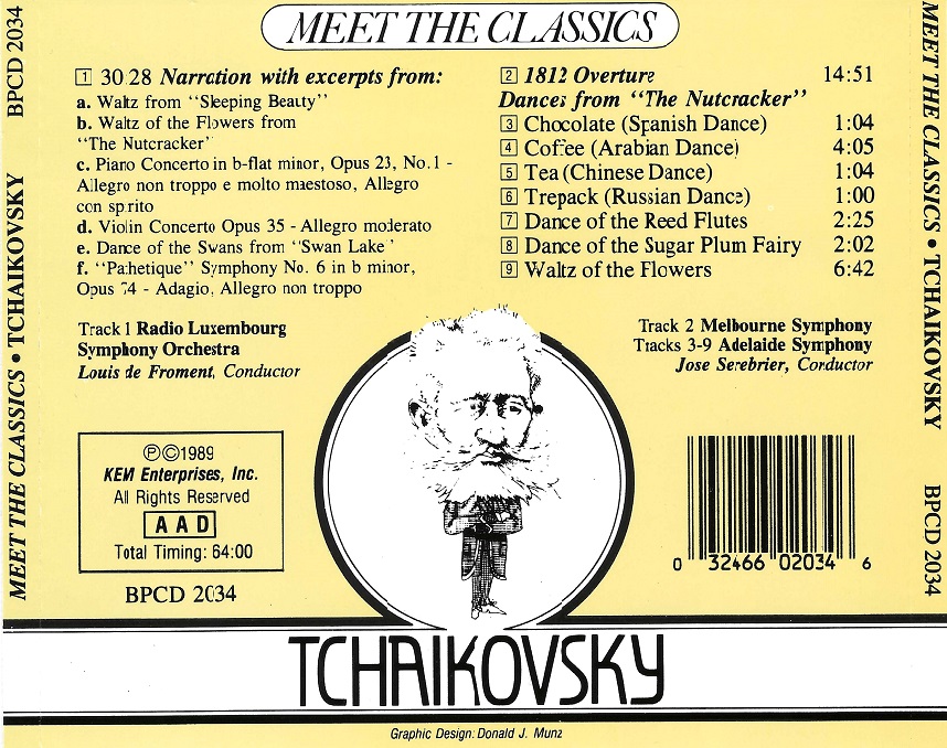 The narrated life of Peter Ilyich Tschaikovsky with music excerpts.